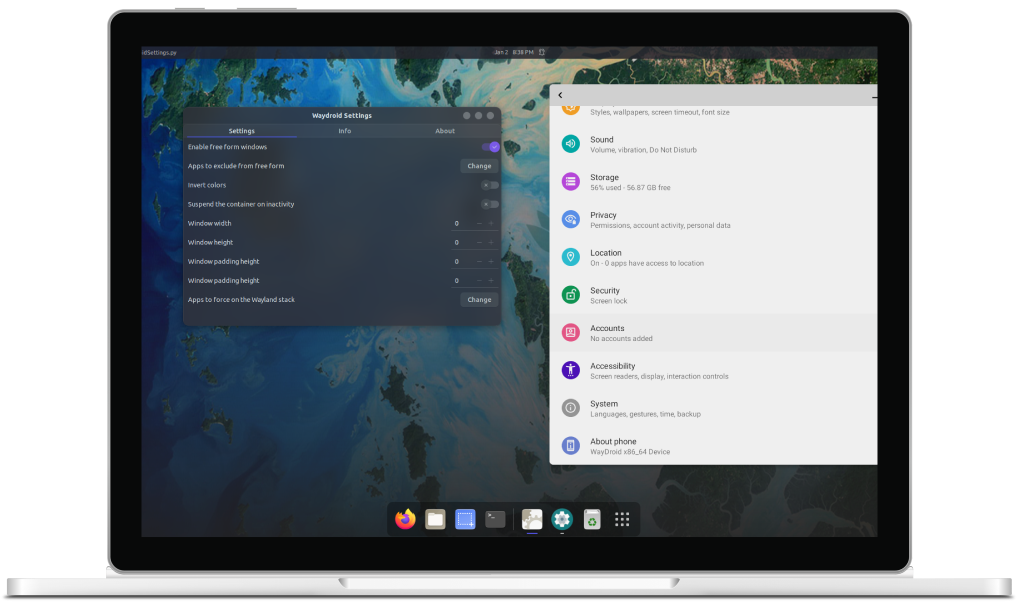 Waydroid expands on Android freeform window definition, adding a number of features.
